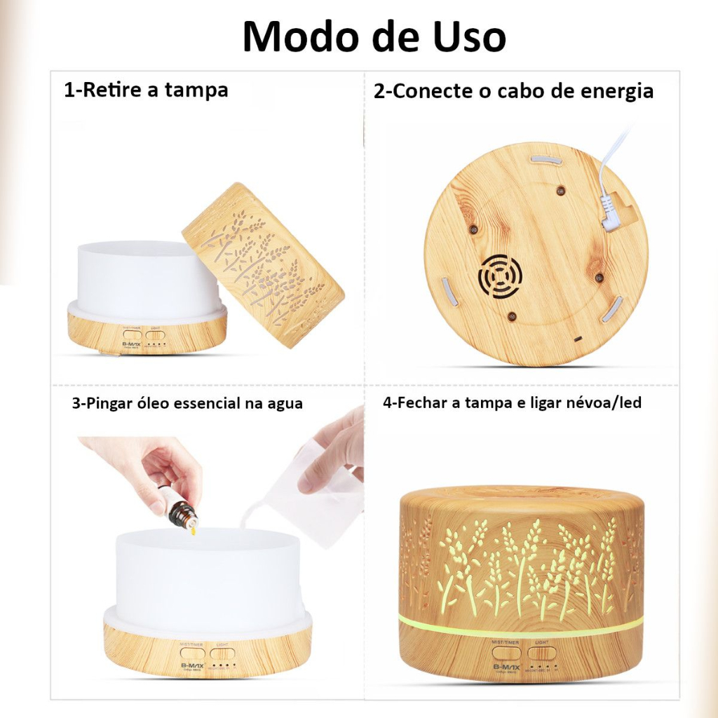 - Conforto na Palma da Mão: Acompanha controle remoto para você ajustar a névoa e as luzes sem precisar levantar do sofá.