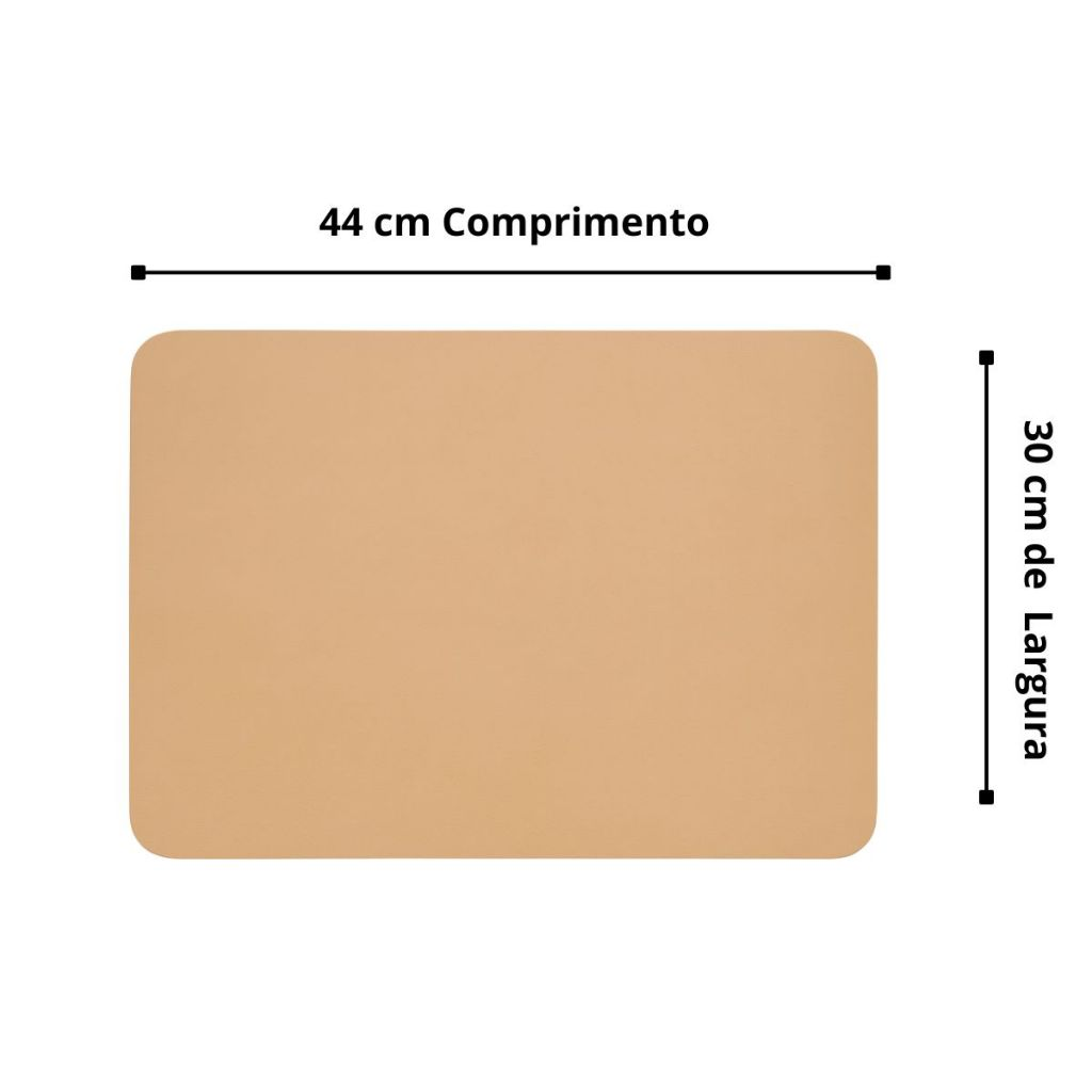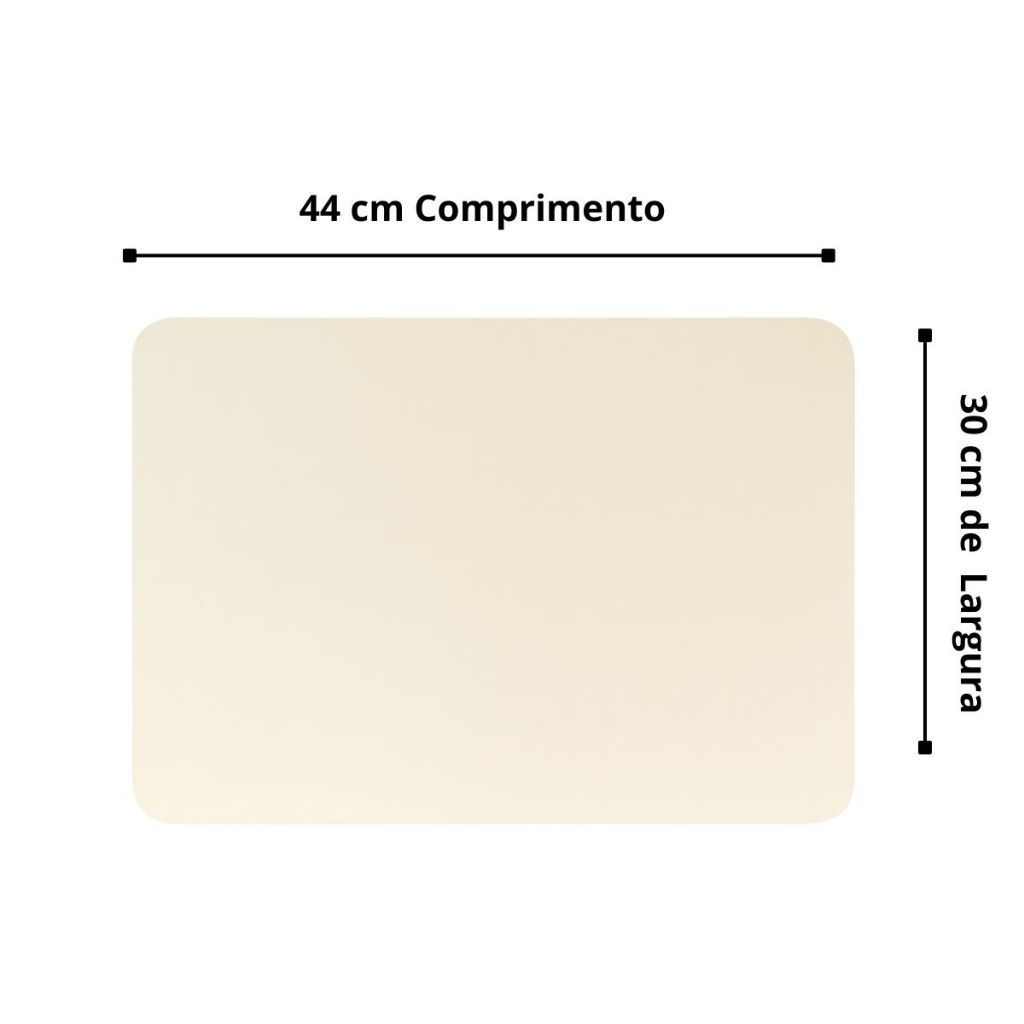 O formato retangular (44x30 cm) com costura lateral dá um toque de charme e protege contra vincos, deixando sua mesa sempre impecável. -
