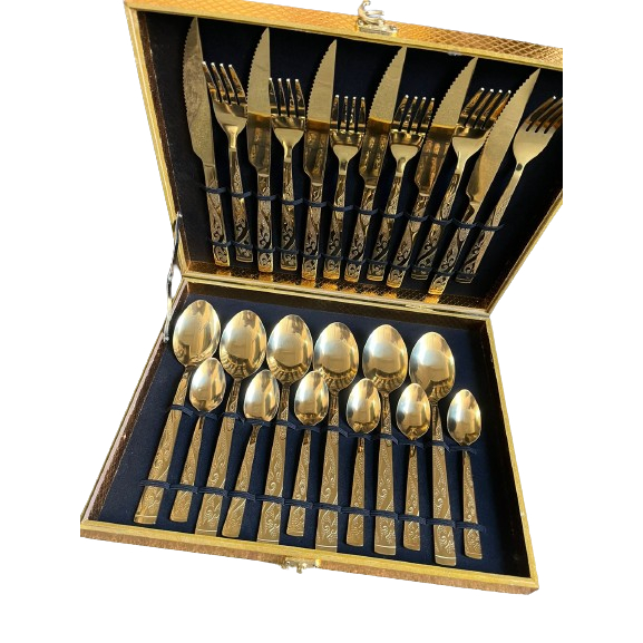 Acompanhado de uma maleta elegante em madeira dourada, este kit é perfeito para organizar e armazenar os talheres com segurança, além de ser um presente incrível para qualquer ocasião.