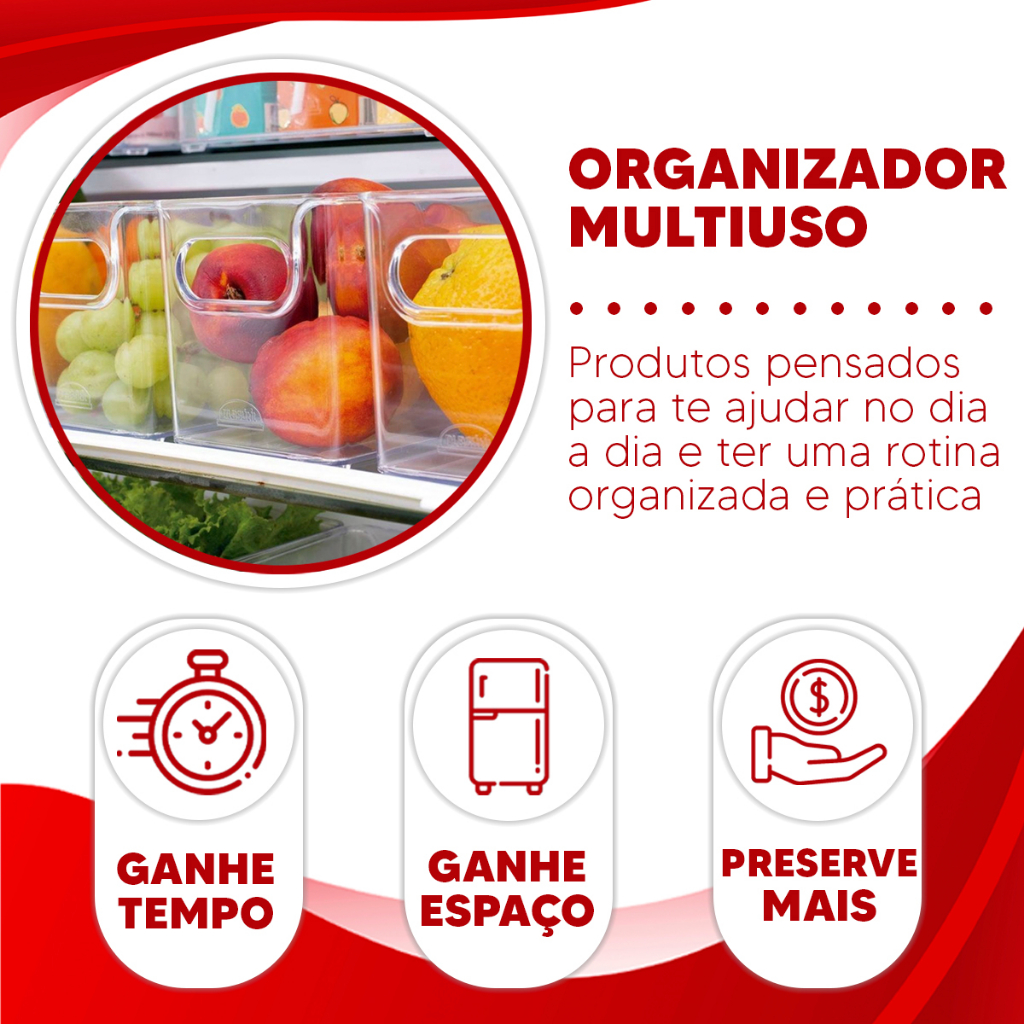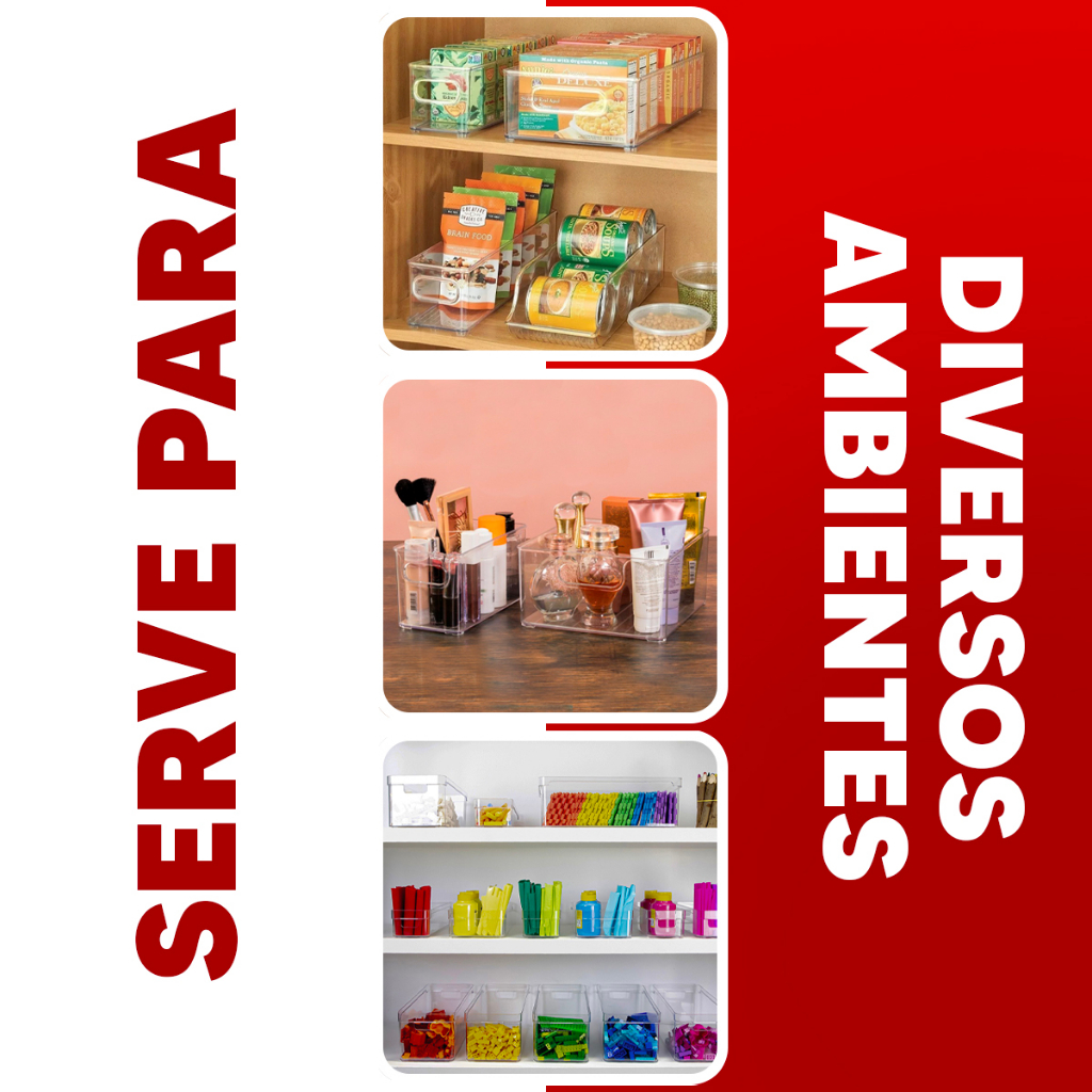 A linha Organizador Multiuso é o novo padrão de organização. Os produtos possuem grande versatilidade podendo ser utilizados em ambientes como: despensa, cozinha, banheiro, quarto e lavanderia. Empilhe, encaixe e enxergue facilmente o conteúdo, mantendo tudo em ordem.