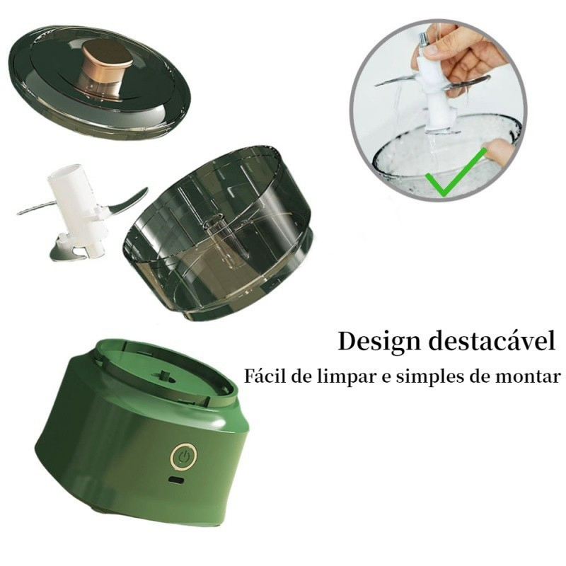 Com o Mini Processador Elétrico , você prepara temperos e ingredientes em apenas 10 segundos , com cortes uniformes, menos esforço e muito mais praticidade no dia a dia.